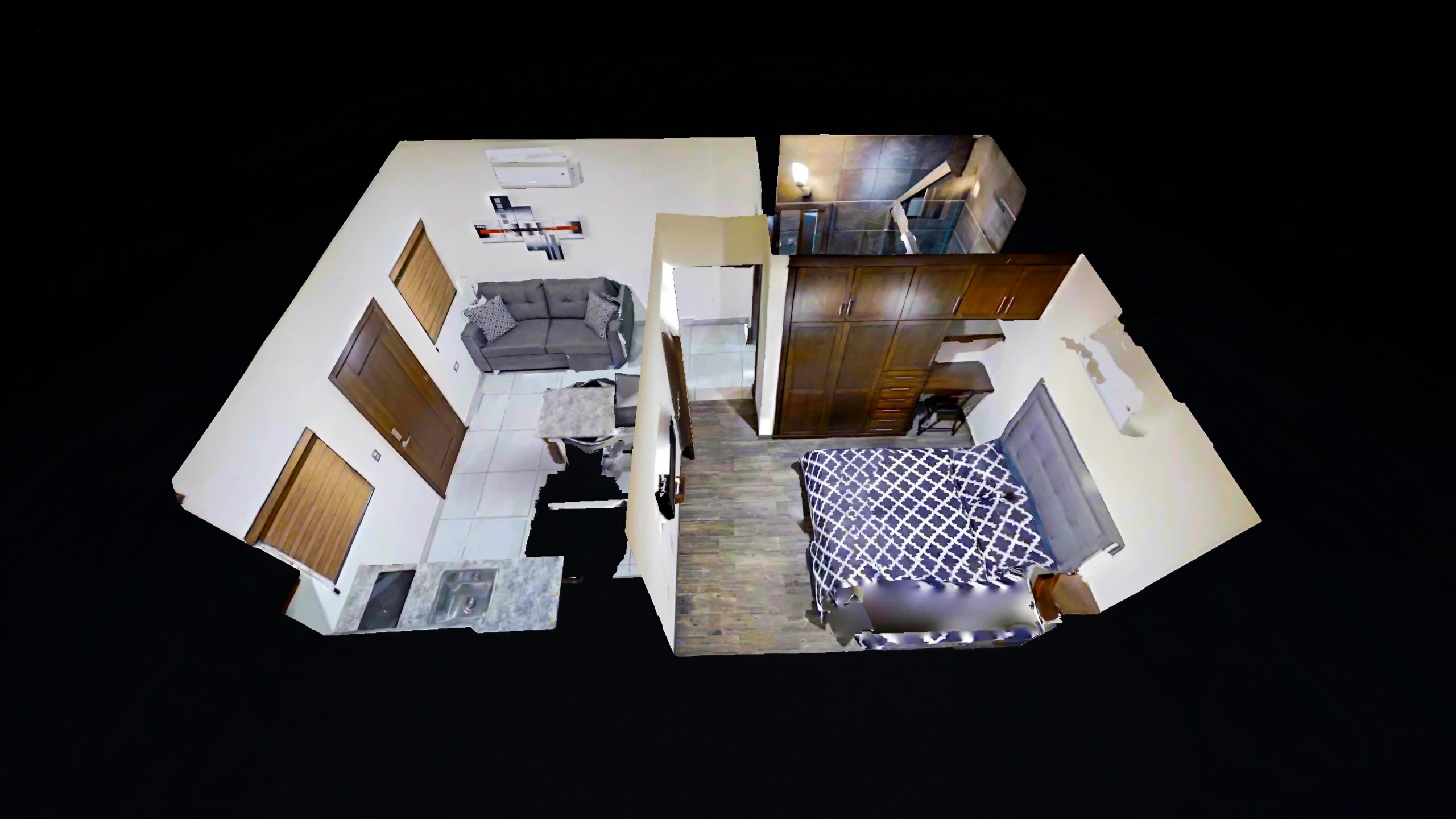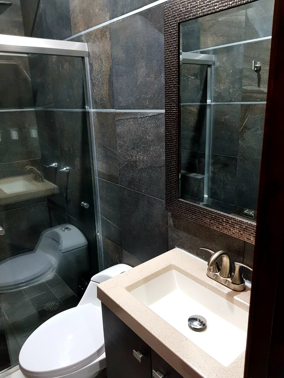 - Baño completo con toallas, papel sanitario, jabón corporal y shampoo.